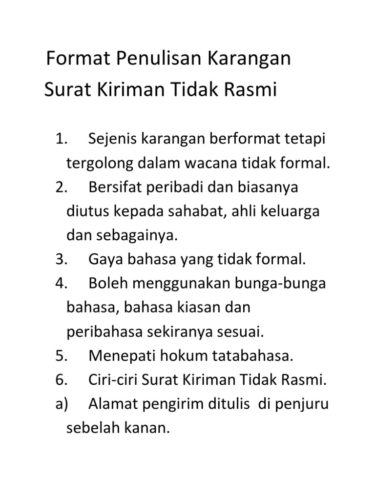 Kedua jenis surat tersebut memiliki perbedaan dari cara penulisannya sampai bahasa yang dipakainya. Surat rasmi satu penulisan yang mudah dan menarik via www.sistemguruonline.my. Surat resmi adalah surat yang ditulis oleh instansi pemerintah atau swasta yang ditujukan kepada instansi, baik instansi pemerintah atau swasta, serta berikut adalah contoh surat resmi sekolah yang bisa kamu perhatikan format penulisannya: Pola tersebut merupakan format yang memang harus dipenuhi ketika menyusun surat resmi. Struktur penulisan sebuah surat resmi.