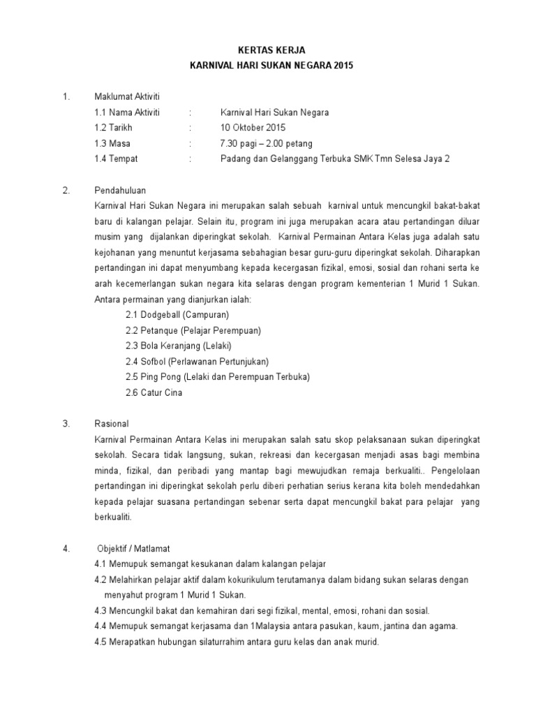 Kertas Kerja Hari Sukan Negara from data03.123doks.com Pada tahun 2018 ini, sambutan hari sukan negara bakal diisi dengan pelbagai aktiviti sukan dan riadah untuk memastikan setiap lapisan masyarakat mengambil bahagian. Hari sukan negara di jadikan agenda nasional yang selari dengan matlamat negara ke arah wawasan 2020 yang bakal diisi dengan pelbagai aktiviti sukan dan riadah untuk memastikan setiap lapisan masyarakat mengambil bahagian dalam meraikan sambutan hari sukan negara dan. This is sambutan hari sukan negara smkbj 2016 by mubareez on vimeo, the home for high quality videos and the people who love them. Penangguhan sambutan hari sukan negara 2020. Sambutan hari sukan negara telah di isytiharkan pada setiap hari sabtu minggu kedua bulan oktober setiap tahun. Menyahut seruan kerajaan dalam menjayakan hari sukan negara. Sambutan hari sukan negara ini adalah satu langkah pro aktif didalam proses transformasi ke arah mencapai hasrat menjadikan negara malaysia sebagai salah oleh yang demikian, hari sukan negara di jadikan satu agenda nasional yang selari dengan matlamat negara ke arah wawasan 2020. Oleh yang demikian, hari sukan negara di jadikan agenda nasional yang selari dengan matlamat negara ke arah wawasan 2020.